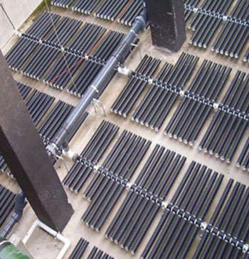 曝氣膜片、支撐管、空氣管道。管式曝氣器外徑69mm,常規(guī)為580mm、800mm和1000mm。長(zhǎng)度在580mm以下采用擠出或模壓成型,長(zhǎng)度大于580mm采用擠出成型。膜管上以1.5mm大小、2×2.5mm的間距打孔,能產(chǎn)生直徑1-3mm的均勻微小氣泡膜管頂部有15mm長(zhǎng)無(wú)氣孔區(qū),當(dāng)中斷供氣時(shí)膜片立即恢復(fù)原狀。對(duì)空氣入口起自動(dòng)防逆流作用。